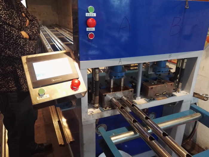 德川機械—數(shù)控全自動沖孔機,38圓管沖25.5孔,漳州用戶現(xiàn)場