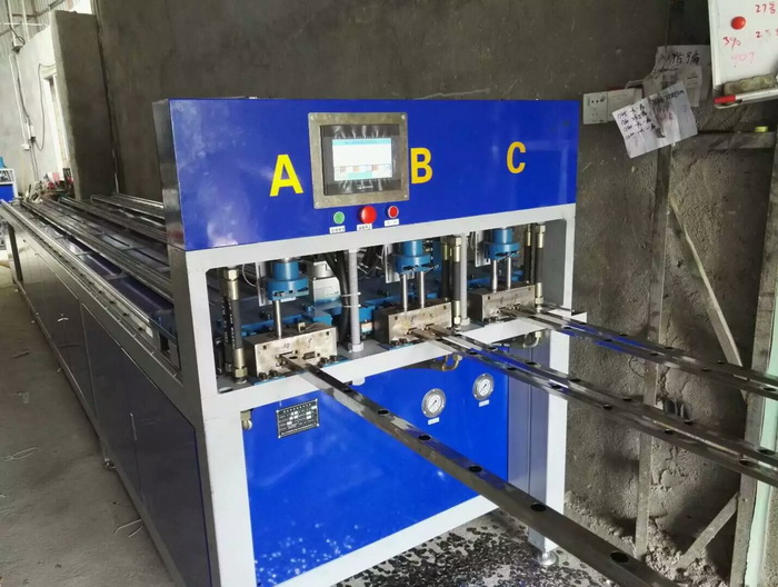 三工位數(shù)控全自動不銹鋼沖孔機,三工位同時工作,一次沖6支管,每個油缸可單獨控制沖全孔、半孔,大大提高不銹鋼防盜網(wǎng)沖孔效率,行業(yè)首創(chuàng),專利產(chǎn)品......