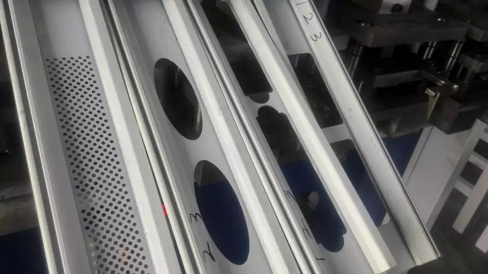 德川機械最新研發(fā)四工位工業(yè)門專用沖孔設備,一次沖55個孔,一臺設備相當4臺普通沖床,裝模、調模方便,占用空間少,適合于工業(yè)提升門、快速門、透視門;智能道閘、水晶卷閘門;不銹鋼車庫門、鋁合金車庫門、彩鋼翻板車庫門、鋁合金卷閘門、卷簾窗的加工。