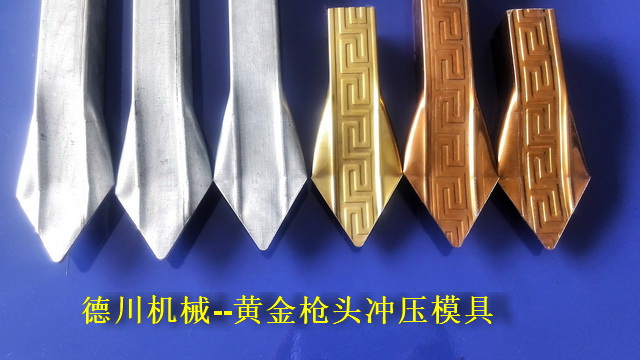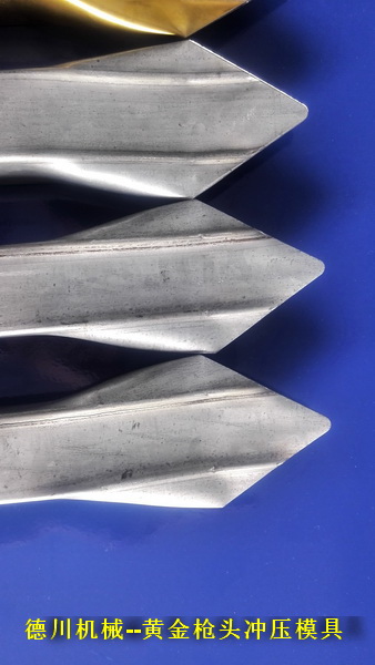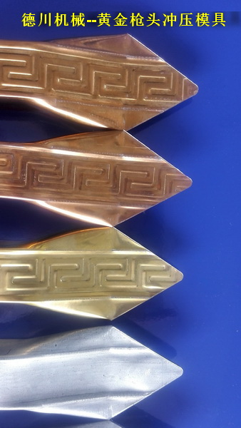 黃金槍頭沖壓模具,一次成型,廢料自動排出,無需人工排出廢料,效率高、操作安全,模具安裝簡易,可以任意調(diào)節(jié)沖不同規(guī)格的管。